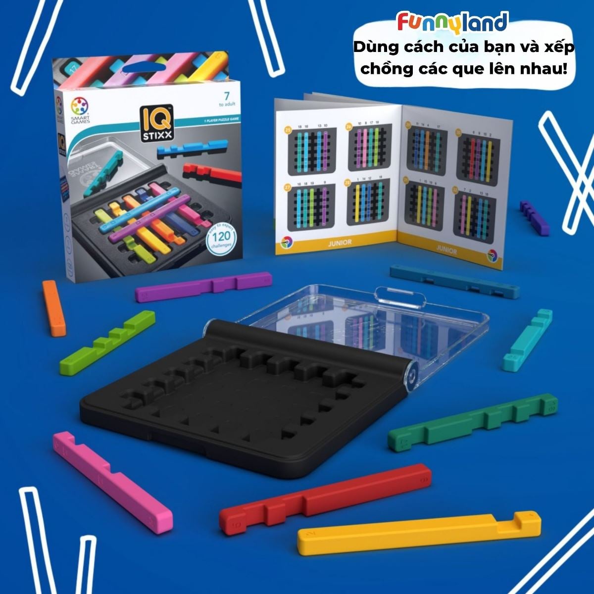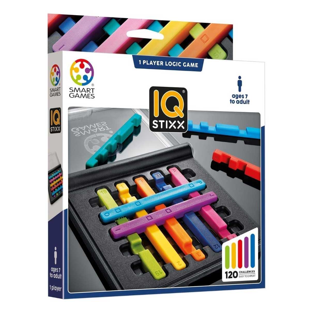 IQ Stixx là dòng đồ chơi thông minh với 120 thử thách mức độ với từ dễ đến khó. Bên trong sản phẩm có 10 mảnh ghép, mỗi mảnh ghép tạo ra bằng hình khối. Khi đặt các mảnh ghép lên trên bảng trò chơi, các hình khối phải nằm hoàn toàn bên trong.