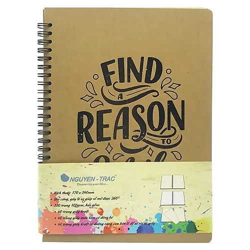 40 trang giấy Kraft + 40 trang giấy màu kem dòng kẻ + 40 trang giấy Kraft có đường răng cưa bên lề để xé rời tờ giấy