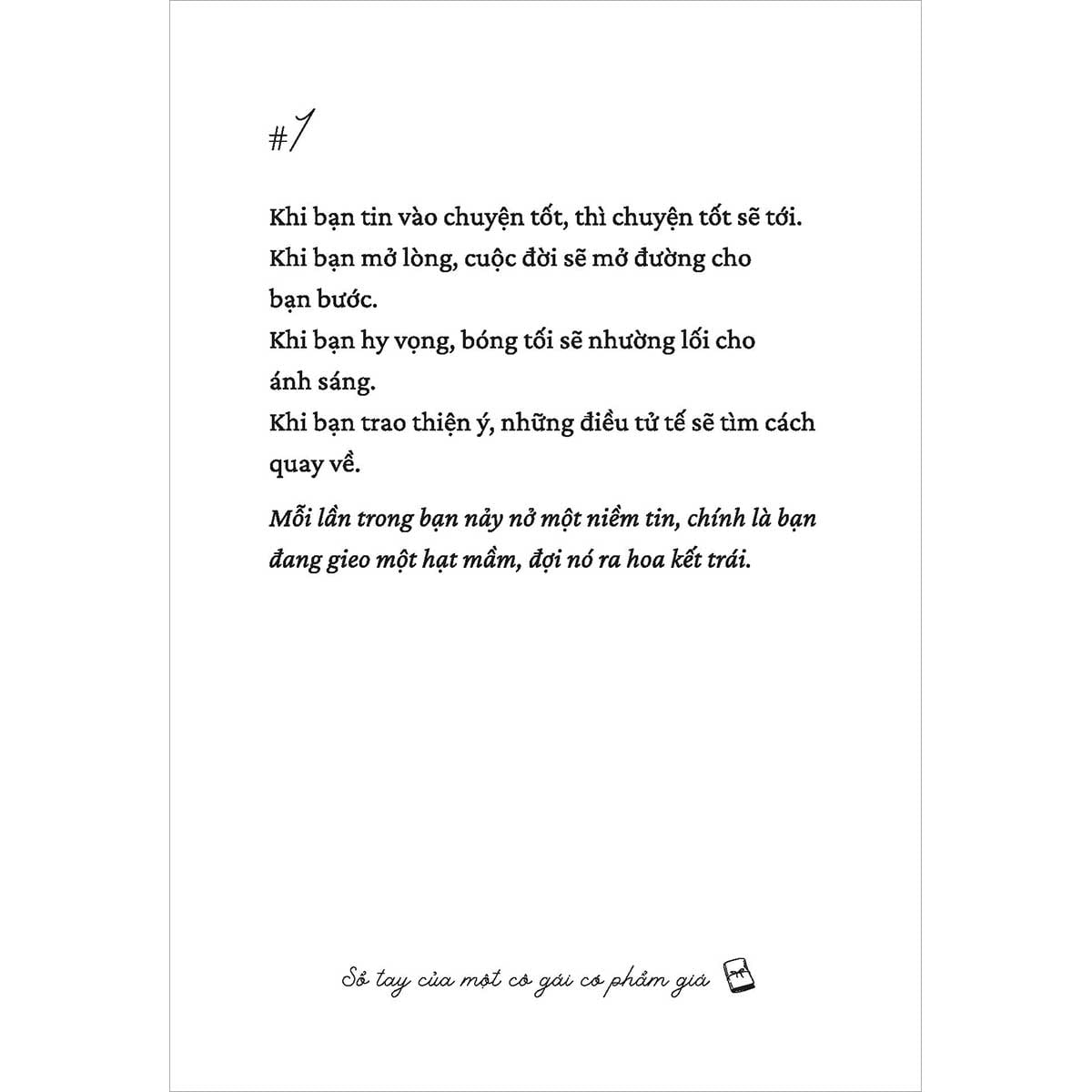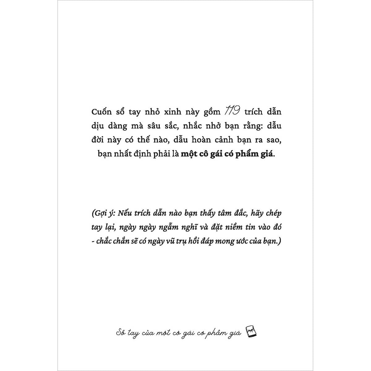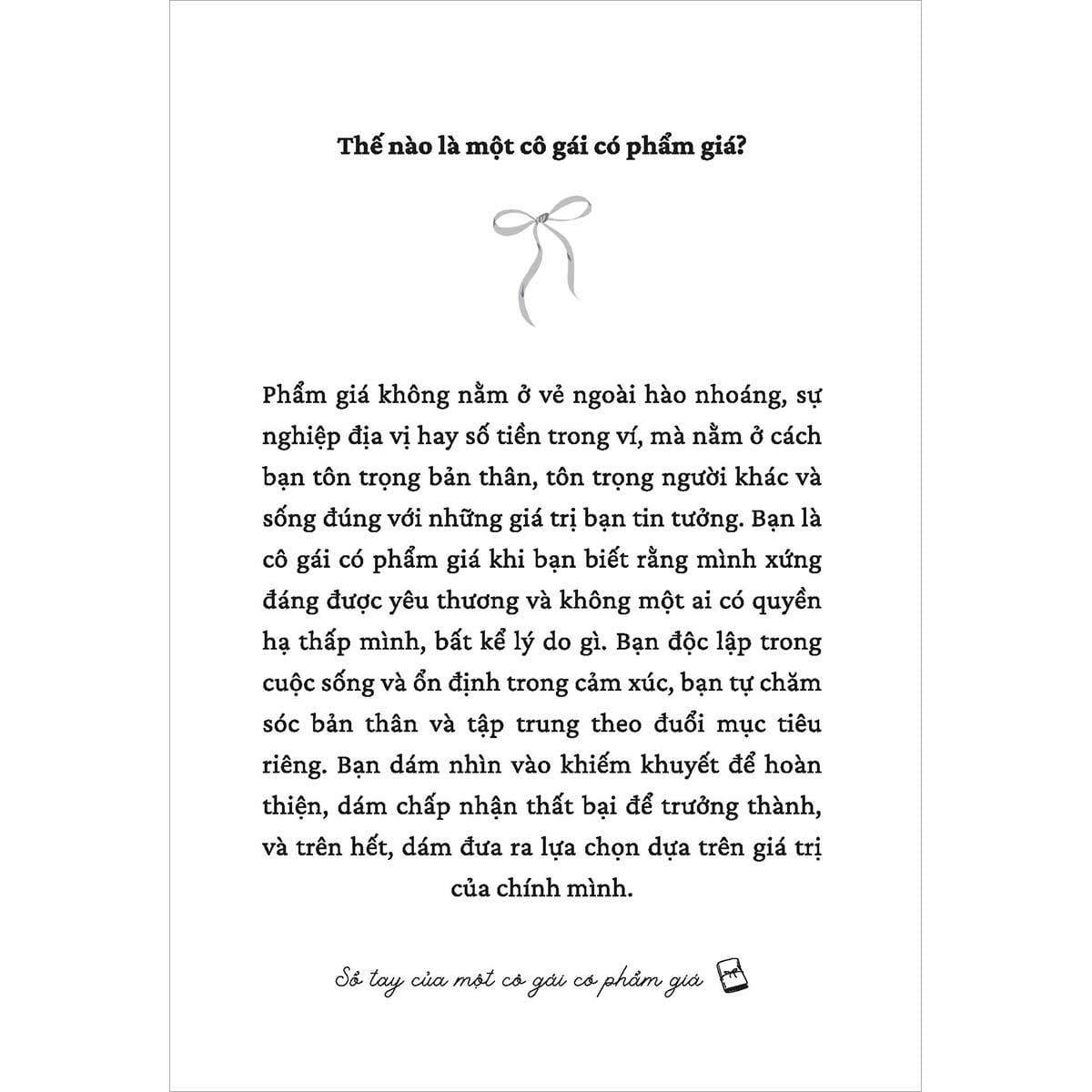 Cuốn sổ tay nhỏ xinh này gồm những trích dẫn dịu dàng mà sâu sắc, nhắc nhở bạn rằng: dẫu đời này có thế nào, dẫu hoàn cảnh bạn ra sao, bạn nhất định phải là một cô gái có phẩm giá.