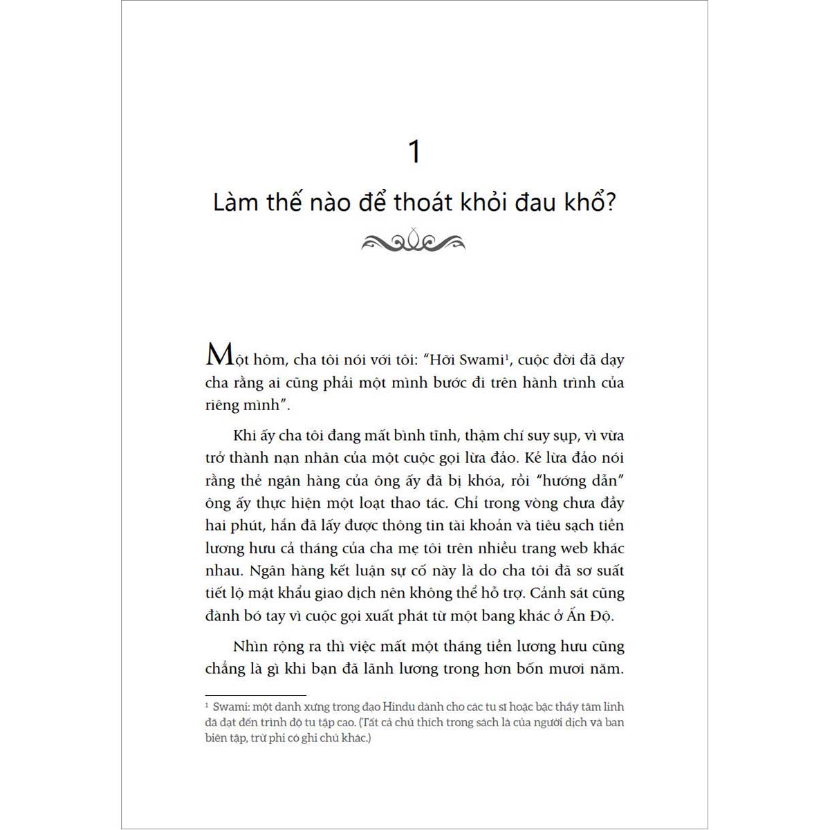 Om Swami gợi ý con đường giải thoát cho những ai đang chìm đắm trong đau khổ là tìm về chánh niệm và chuyển hóa cảm xúc. Ông viết: “Đừng giữ lấy hay trút bỏ những cảm xúc tiêu cực một cách bừa bãi, mà hãy khéo léo chuyển hóa chúng. Chỉ cần chú tâm và tỉnh thức trong từng khoảnh khắc, điều đó sẽ có ích cho bạn”.
