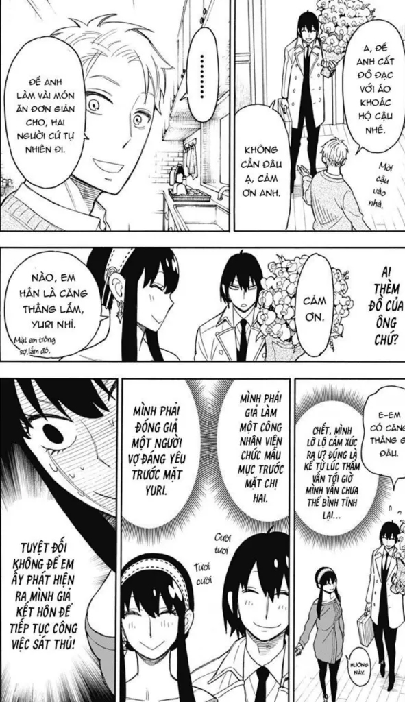 Yuri, em trai của Yor đã tới thăm nhà Forger!! Twilight và Yuri cùng giấu nhẹm thân phận điệp viên, cũng như cảnh sát mật của mình, và giở đủ chiêu thăm dò lẫn nhau. Yuri, cậu em cuồng chị gái đang gấp rút muốn điều tra xem liệu Twilight có phải là người chồng thật sự của chị mình hay không...!?