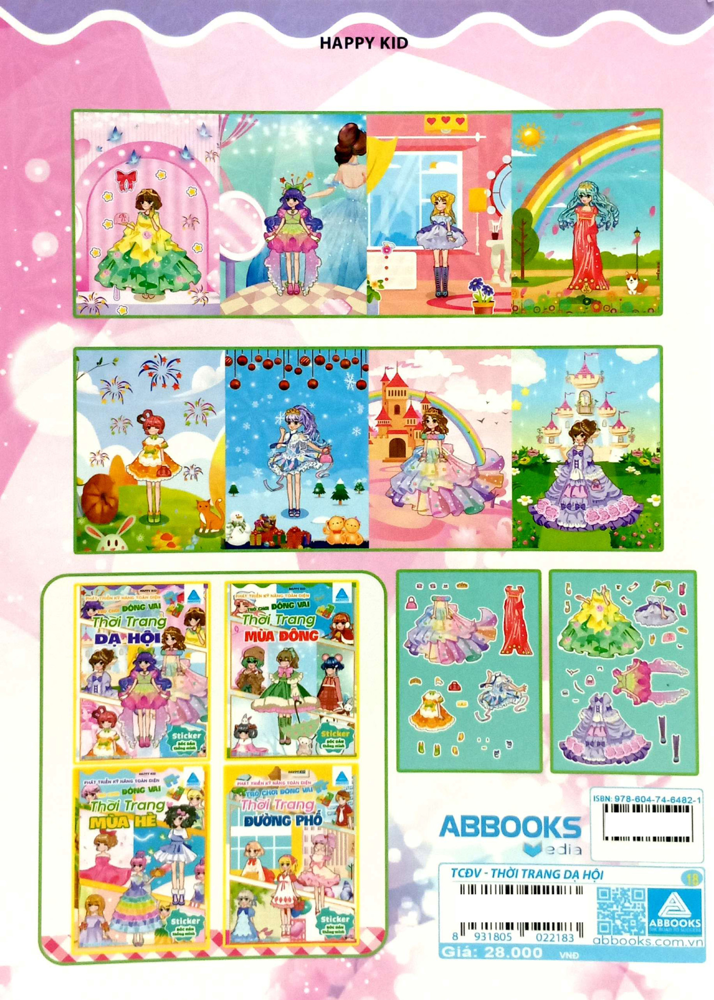 Bộ 4 cuốn sticker bóc dán thông minh là món quà hoàn hảo dành cho các bé gái yêu thích thời trang và sáng tạo. Mỗi cuốn sách là một thế giới riêng, nơi bé có thể tự tay lựa chọn và phối đồ cho nhân vật theo từng chủ đề hấp dẫn như: công chúa, dạ hội, lễ hội hóa trang, thời trang 4 mùa.