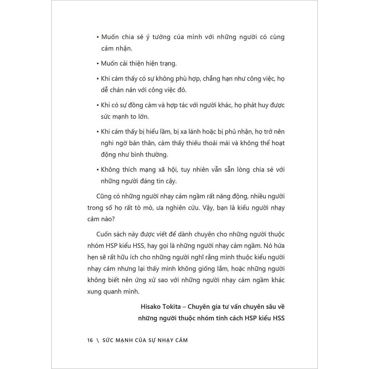 Sức mạnh của sự nhạy cảm được viết dành cho những người như thế. Cuốn sách chỉ ra nguyên nhân khiến bạn thấy mệt mỏi trước những điều người khác dễ dàng vượt qua, đồng thời cung cấp các hướng tiếp cận bền vững để bạn quản lý năng lượng, rèn sự tập trung và xây dựng ranh giới lành mạnh trong các mối quan hệ. Qua từng chương, bạn sẽ học cách chuyển hóa sự quá tải thành khả năng quan sát sâu, biến sự mong manh thành sức mạnh, và sống một cuộc đời mà sự nhạy cảm không còn là gánh nặng, mà trở thành lợi thế lớn nhất của bạn.