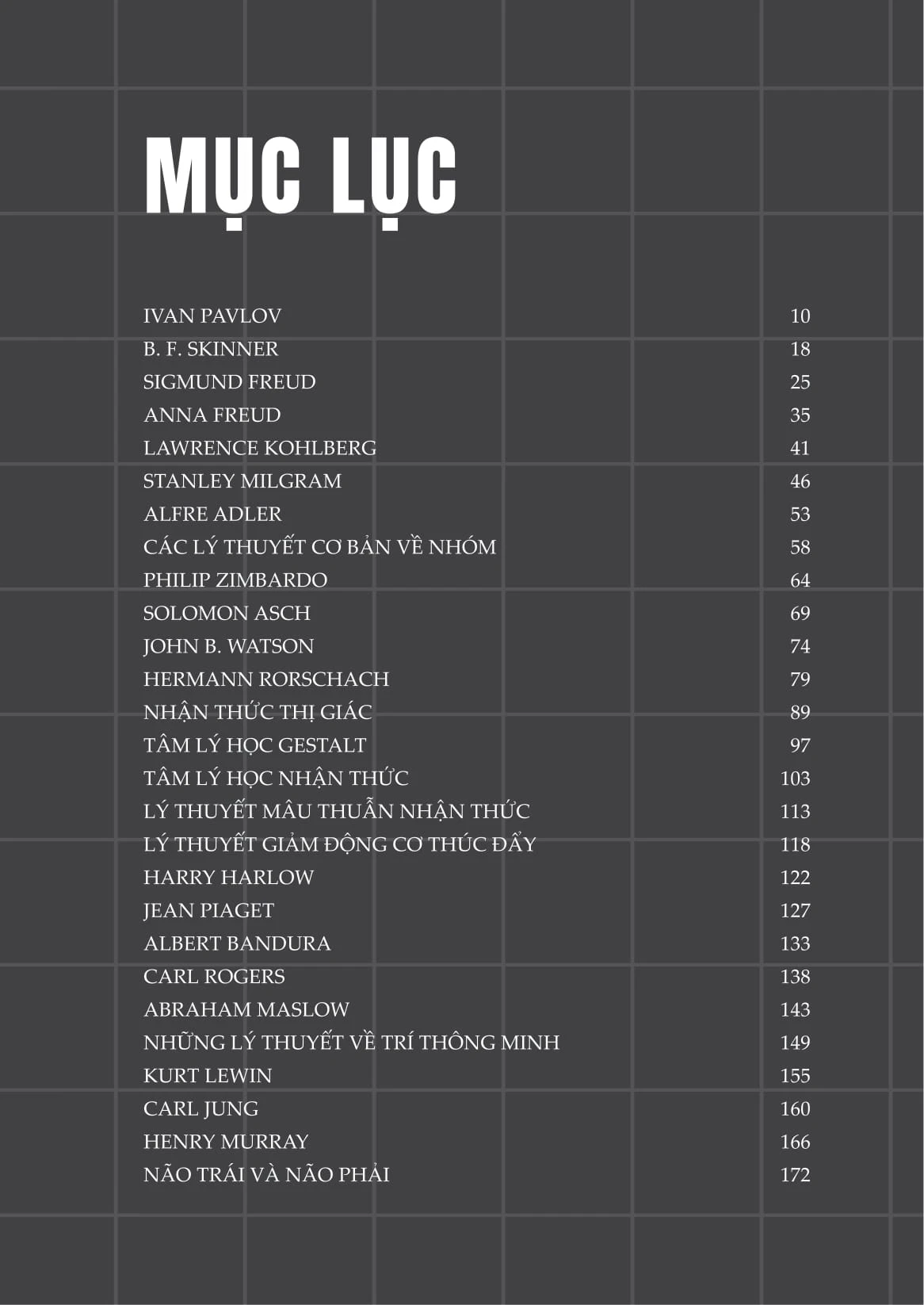 Từ chiếc hộp Skinner đến những chú chó của Pavlov, từ tiềm thức theo Freud đến những bài toán đạo đức của Kohlberg..., cuốn sách này là một bản đồ dẫn lối để hiểu về chính mình và thế giới nội tâm đầy phức tạp của con người.