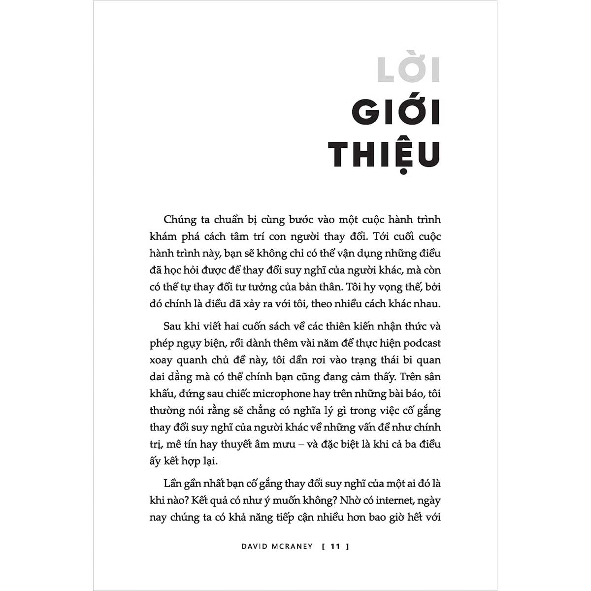 Khi thế giới ngày càng phân cực, việc thay đổi suy nghĩ của một người có quan điểm trái ngược tưởng chừng như bất khả thi. Nhưng cuốn sách này sẽ cho bạn thấy, bạn có thể chỉ cách một cuộc trò chuyện để làm ai đó thay đổi suy nghĩ về một vấn đề hay thậm chí là rất nhiều vấn đề.