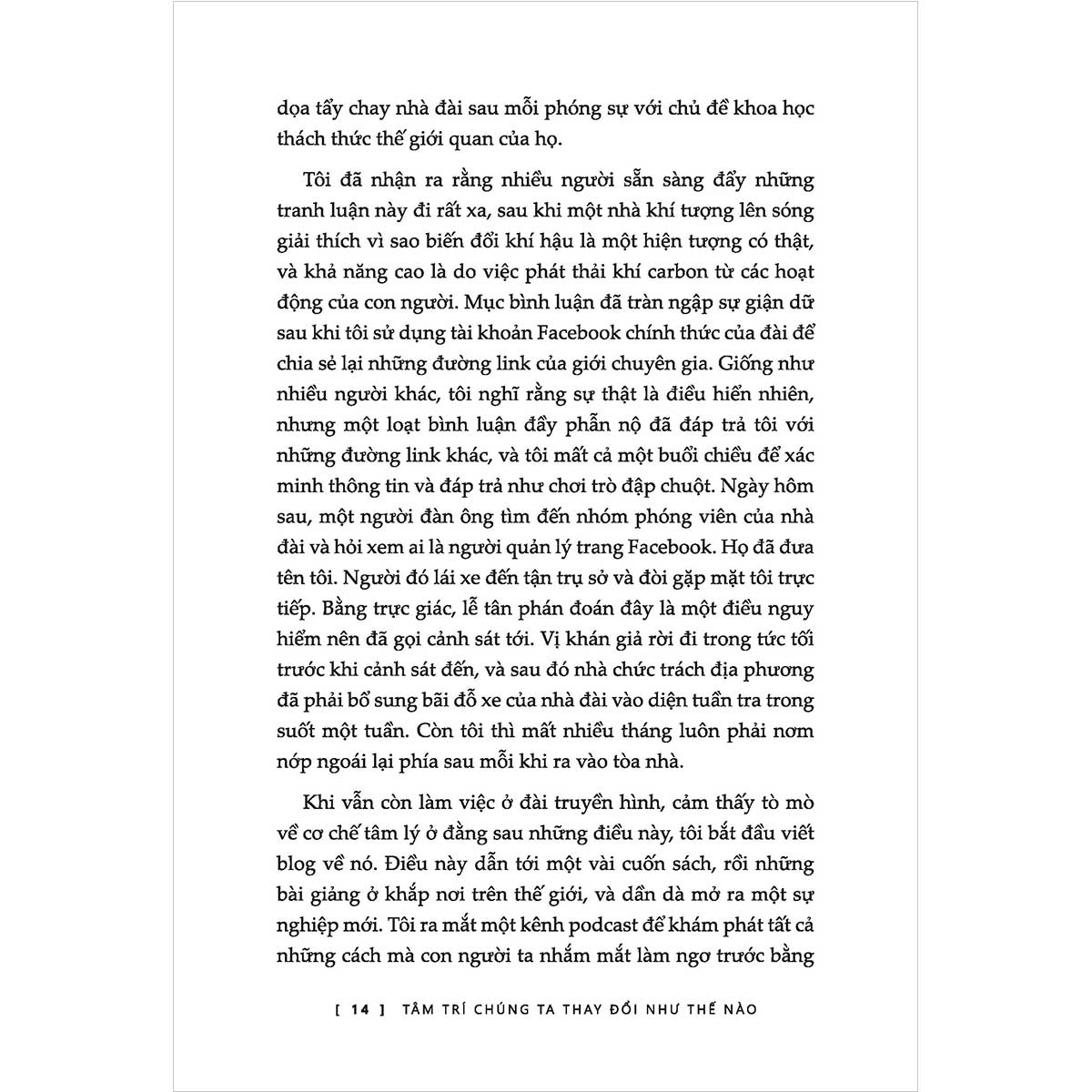 Chắt lọc từ những nghiên cứu mới nhất trong ngành tâm lý học và khoa học thần kinh, Tâm trí chúng ta thay đổi như thế nào hé lộ cách niềm tin hình thành không phải qua hàng thế kỷ, mà trong chưa đầy một thế hệ, chưa đầy một thập kỷ và đôi khi chỉ trong khoảnh khắc. Bằng nền tảng khoa học vững chắc cùng sự hài hước duyên dáng, David McRaney đã trở thành người chỉ dẫn lý tưởng, giúp bạn khám phá bí mật của tâm trí và nghệ thuật thuyết phục.