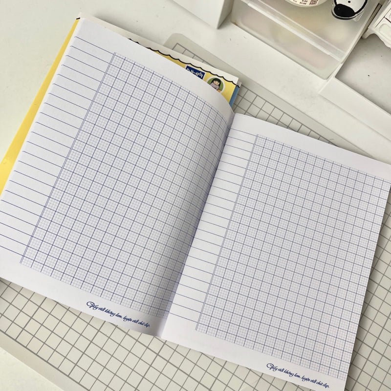 - Gáy tập chắc chắn giúp dễ dàng lật mở các trang khi viết mà không làm bung, hỏng giấy.