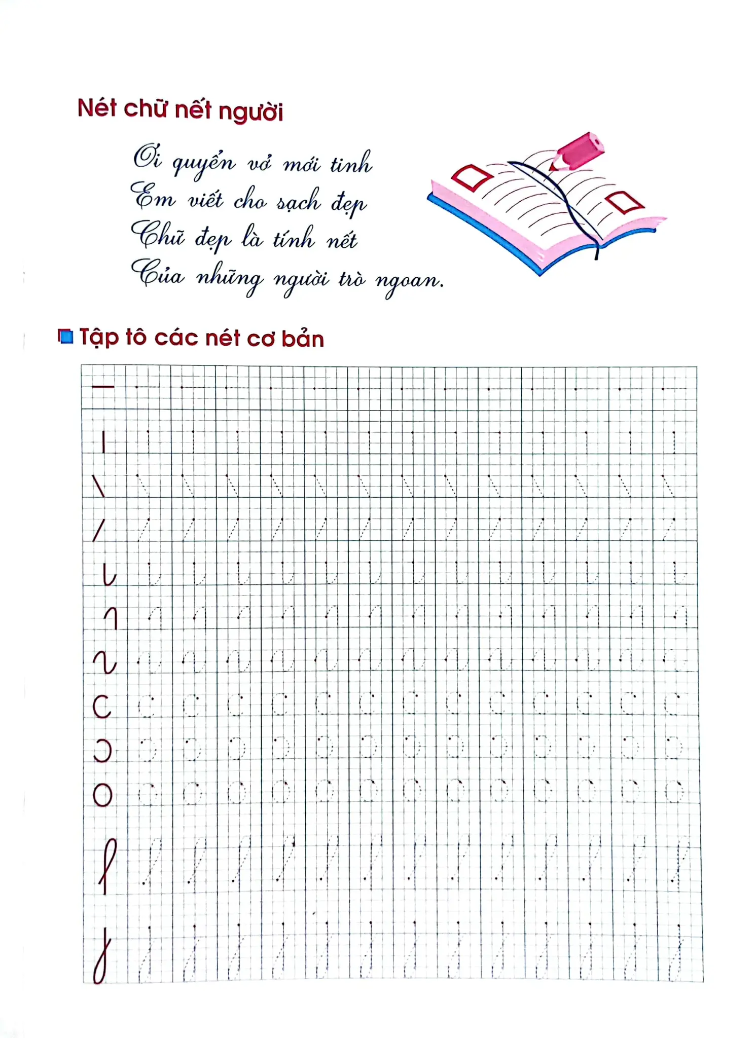 Tập tô nét cơ bản dành cho trẻ 5-6 tuổi trong đó có các bài tập tô các nét chữ cơ bản