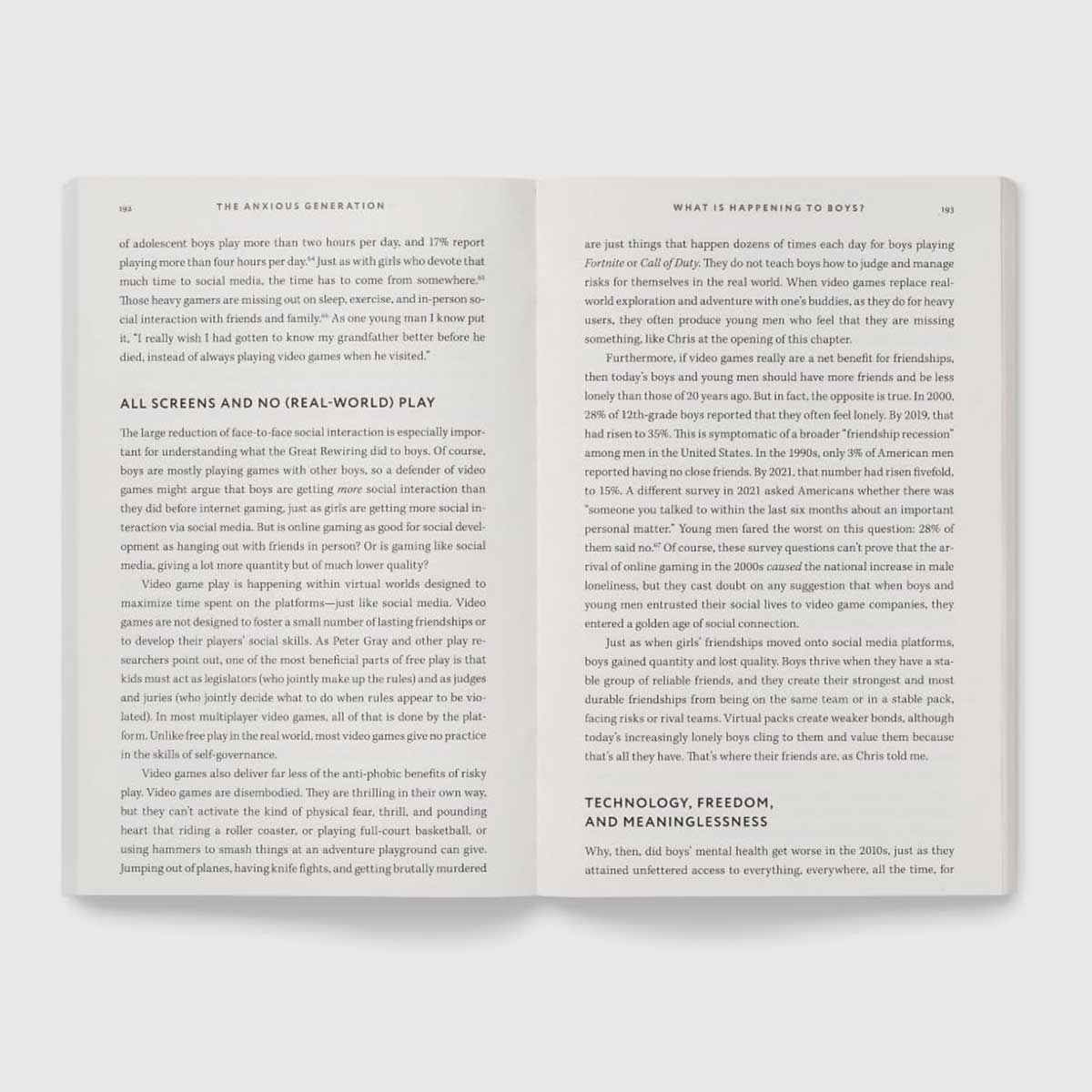 “With tenacity and candor, Haidt lays out the consequences that have come with allowing kids to drift further into the virtual world . . . While also offering suggestions and solutions that could help protect a new generation of kids.” —Shannon Carlin, TIME, 100 Must-Read Books of 2024