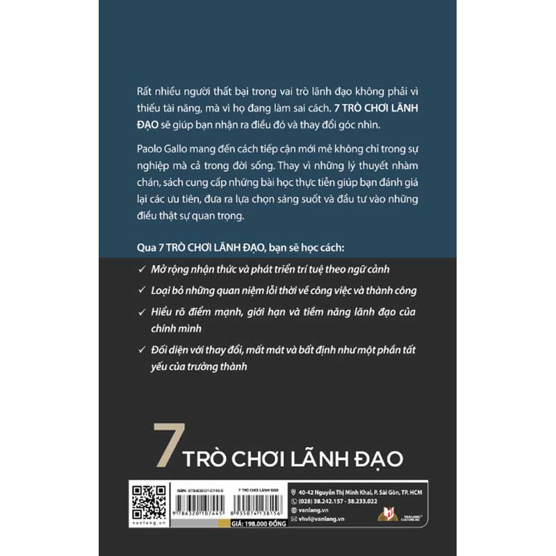 Nhiều người thất bại trong vai trò lãnh đạo không phải vì thiếu năng lực, mà vì đang đi sai hướng. 7 Trò Chơi Lãnh Đạo giúp bạn nhìn lại cách mình đang làm việc, ra quyết định và dẫn dắt người khác, từ đó thay đổi góc nhìn để trưởng thành bền vững hơn không chỉ trong sự nghiệp mà cả trong cuộc sống.
