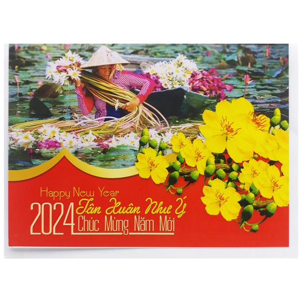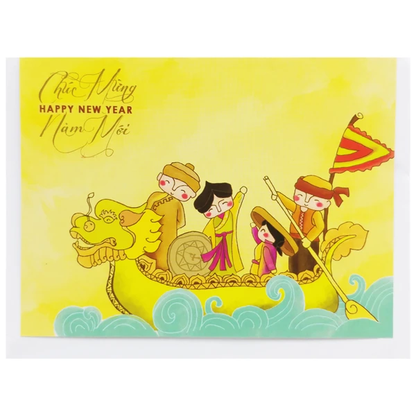 Thiệp Tết sử dụng chất liệu giấy mỹ thuật cao cấp, cứng cáp và trơn láng, khả năng thấm hút mực nhanh và không bị lem mực khi viết.