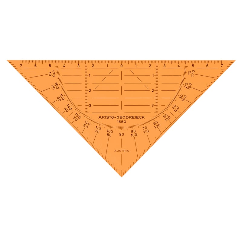 Thước kẻ Cam 45 độ, 16 CM AR1550OR Geodreieck® 1550GR (xanh lục) có cạnh huyền là 16 cm. Geodreiecke® 1550 được làm bằng Vivak® PET-G dày 0,75 mm. Điều này được đặc trưng bởi tính linh hoạt của nó và do đó hầu như không thể phá vỡ. Mặc dù tính linh hoạt, độ chính xác của kích thước không bị ảnh hưởng. Geodreieck® kết hợp thước kẻ, thước đo góc, thước đo đối xứng và thước song song trong một thiết bị vẽ. |