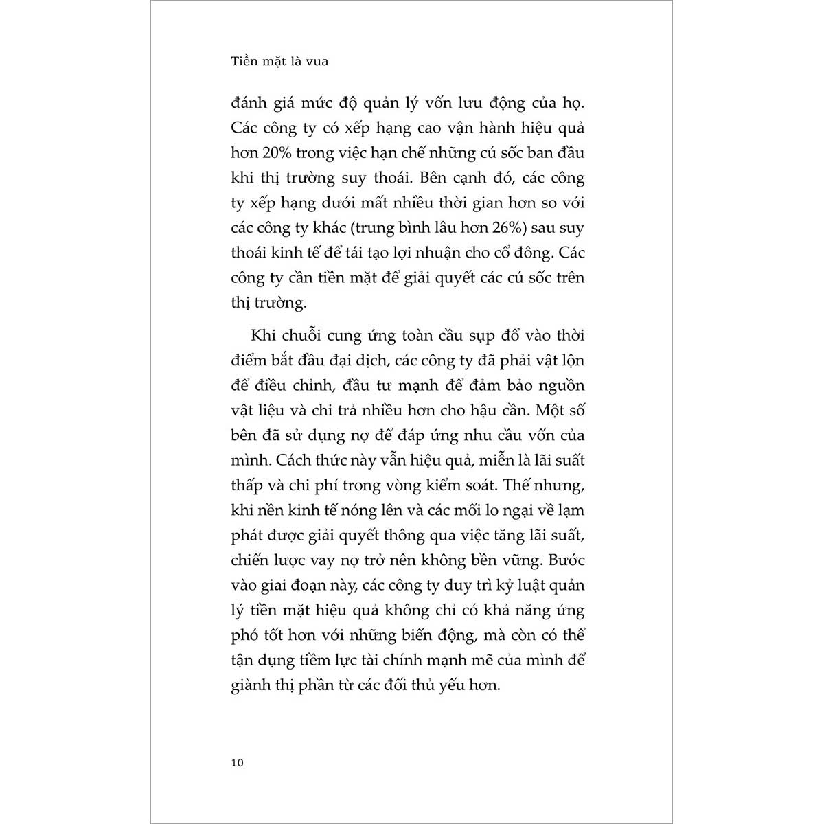 Điểm nổi bật của cuốn sách là cách tiếp cận thực tế, dễ hiểu thông qua các tình huống kinh doanh điển hình, giúp người đọc thấy rõ vì sao nhiều công ty dù tăng trưởng mạnh vẫn gặp khó khăn chỉ vì quản lý dòng tiền chưa hiệu quả. Nghiên cứu trên hàng nghìn doanh nghiệp toàn cầu cũng cho thấy những công ty quản lý tiền mặt tốt có khả năng chống chịu khủng hoảng cao hơn đáng kể.