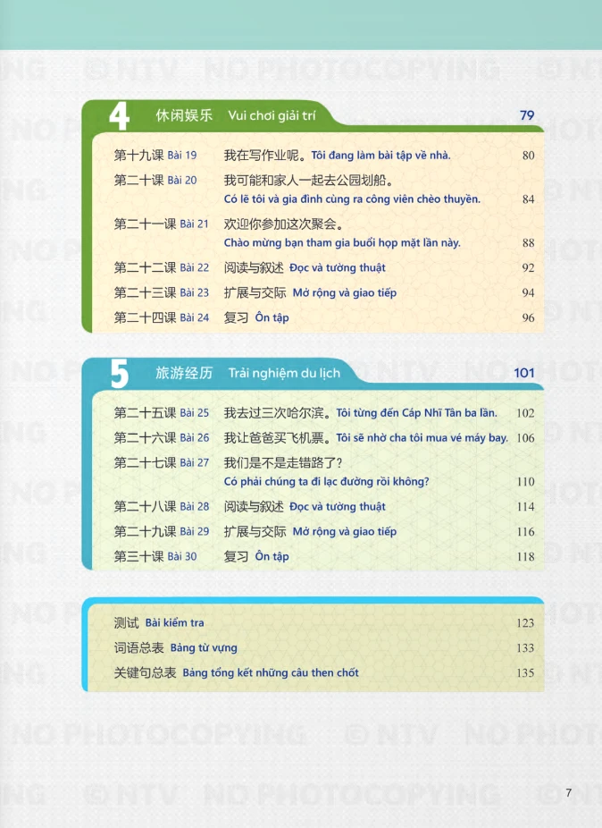 Cuối mỗi tập của bộ sách có bài kiểm tra dựa theo cấu trúc của đề thi HSK mới để giúp học sinh làm quen với các dạng đề HSK mới.