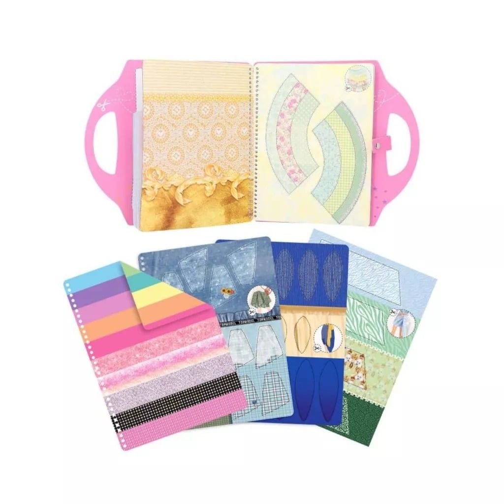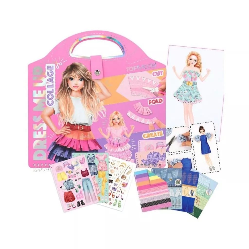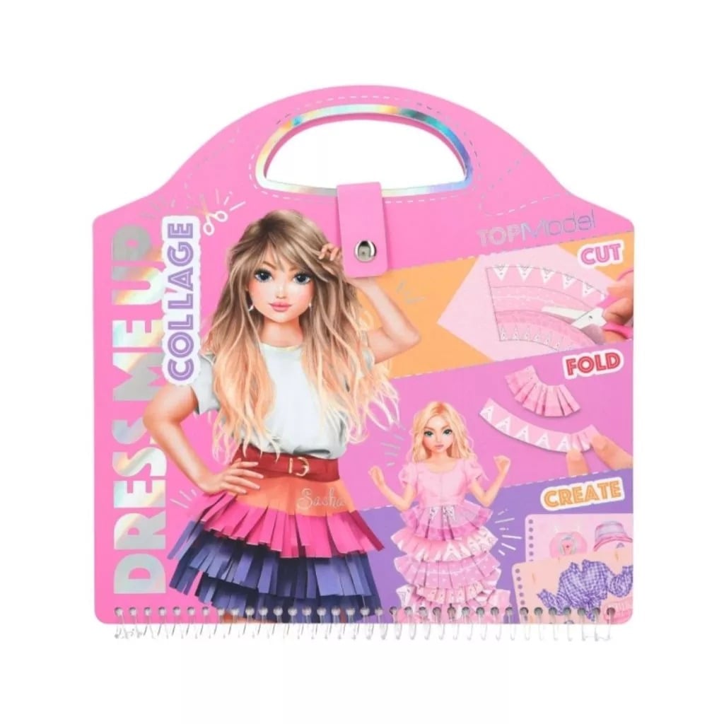 TOPMODEL Dress Me Up Collage Book bao gồm 20 trang có người mẫu, 20 trang mẫu vải tuyệt đẹp, 50 trang sticker, 1 trang sticker sa-tanh và 1 trang sticker nhũ.