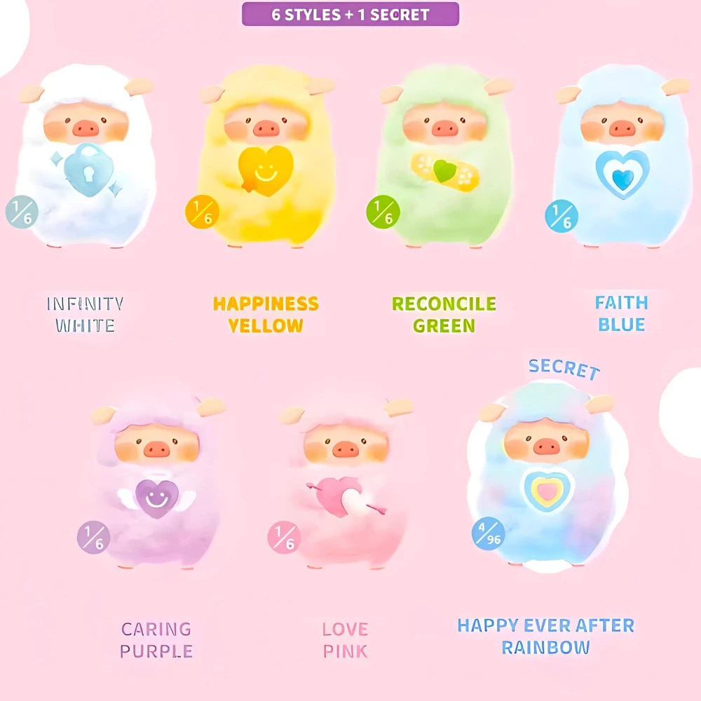 Bộ blindbox siêu dễ thương đến từ nhà TOYZERO+ khi biến mỗi chú heo LULU the Piggy thành một em bé bông siêu xinh xắn với đủ sắc màu. Bạn có thể trưng bày, ôm các bé đi ngủ hay treo các bé vào túi đeo hàng ngày như một chiếc charm đáng yêu.