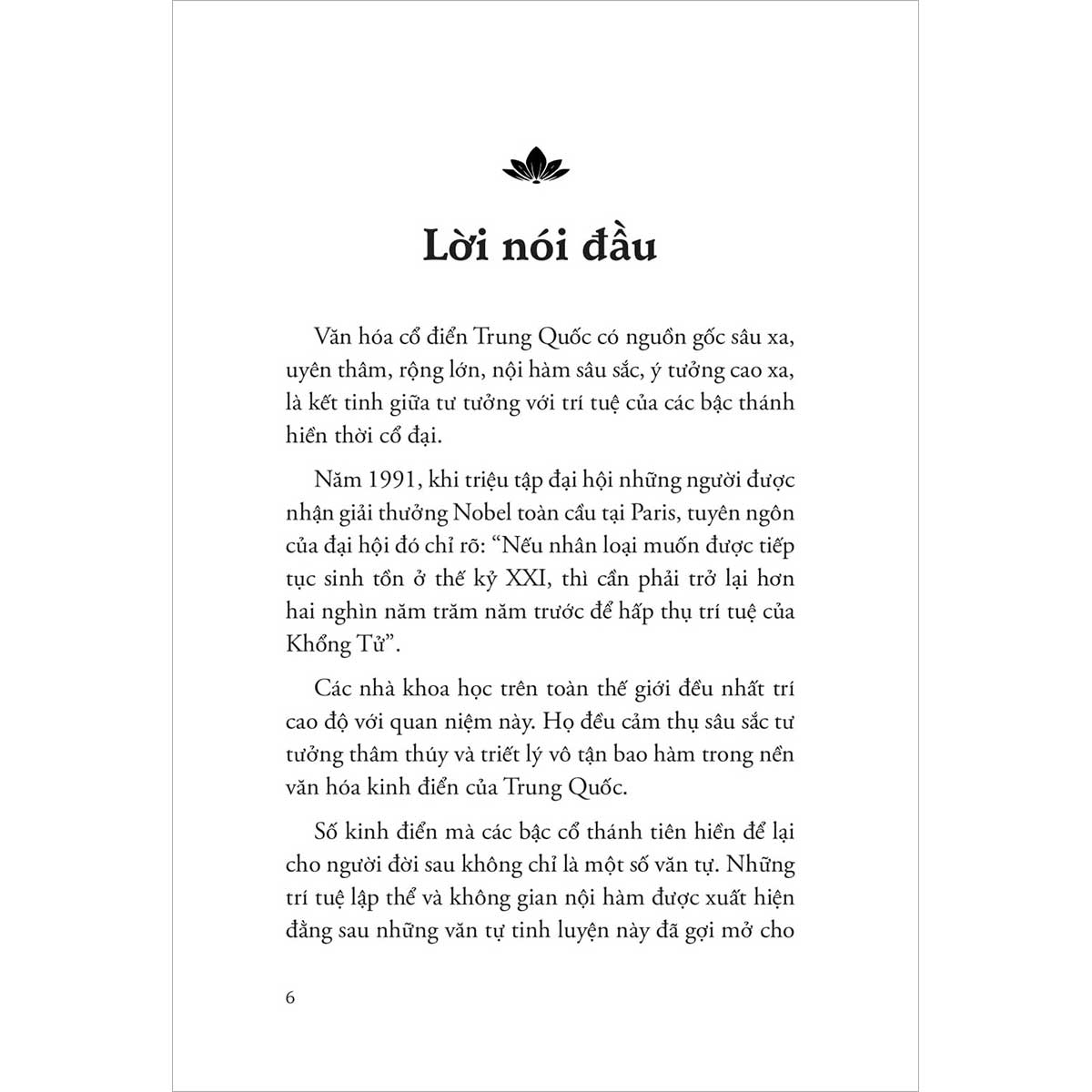 Sách được biên soạn với cấu trúc rõ ràng, dễ tra cứu, mỗi đoạn đều có nguyên văn và phần dịch nghĩa kèm chú thích, giúp người đọc từ phổ thông đến nghiên cứu đều có thể tiếp cận. Những trích đoạn từ Đạo Đức Kinh, Trang Tử Nam Hoa Kinh, Luận Ngữ, Mạnh Tử không chỉ chứa đựng minh triết sâu xa, mà còn mang tính thực tiễn khi được đặt vào bối cảnh giáo dục, chính trị, ứng xử xã hội hay đạo đức cá nhân.