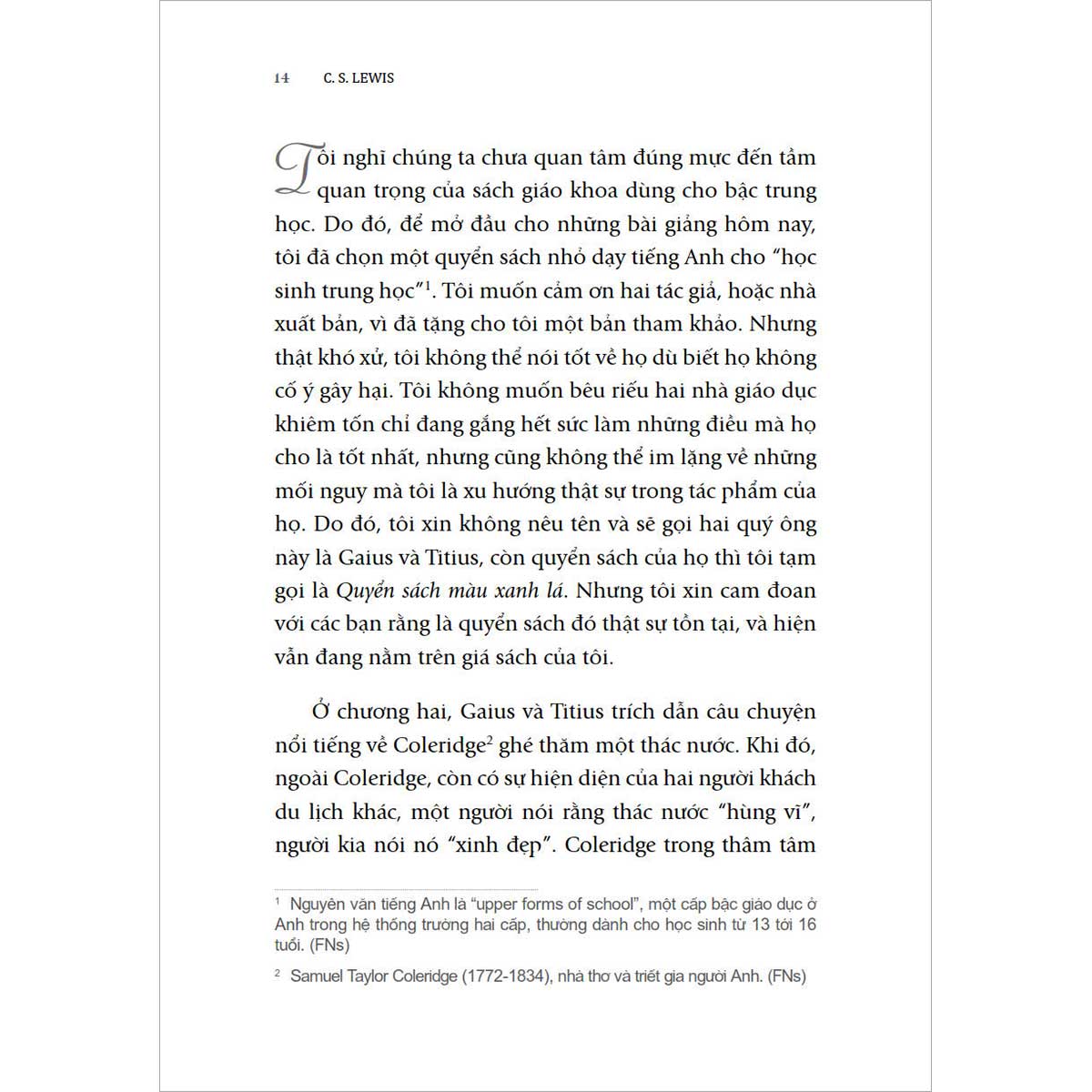 Ông cảnh tỉnh: “Các cậu bé cứ nghĩ rằng chúng đang ‘làm bài tập tiếng Anh’, không hề hay biết những bài tập ấy sẽ có ảnh hưởng sâu đậm lên cả đạo đức, thần học, và chính trị. Họ không đặt vào đầu đứa trẻ một lý thuyết, mà chỉ là một giả định, và đến mười năm sau, khi nguồn gốc đã bị lãng quên và nó chỉ còn hiện diện trong vô thức, giả định ấy sẽ khiến cậu học trò chọn một phe trong cuộc xung đột mà cậu thậm chí còn chưa bao giờ nhận ra đó là một cuộc xung đột”.