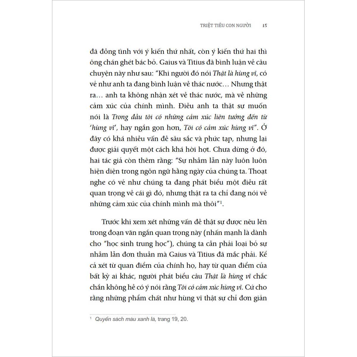 Xuất phát điểm của phần đầu tiên là một quyển sách ngữ pháp tiếng Anh ở bậc trung học mà Lewis cho là đã tiêm nhiễm vào đầu óc ngây thơ của học sinh những lý thuyết không thể chấp nhận về cảm xúc. Với ông, những ý tưởng ẩn chứa trong đó sẽ phá hủy nền tảng giáo dục tốt đẹp xưa cũ, hủy hoại nền văn minh khi tìm cách tách rời cảm xúc ra khỏi thực tại và giáng cấp cảm xúc.