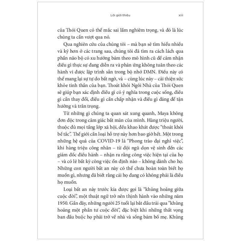 Trong cuốn sách “Trọn vẹn từng giác quan”, nhà thần kinh học Norman Farb và nhà tâm lý lâm sàng Zindel Segal giải thích rằng bộ não có hai mạng lưới: mạng lưới giải quyết vấn đề nhanh chóng (thói quen) và mạng lưới cảm giác, dành riêng cho những hiểu biết mới mẻ. Bằng cách điều chỉnh vào những cảm giác mới và hàng ngày - từ cảm giác bàn chân trên đường phố đông đúc đến tiếng chim hót trong công viên - chúng ta có thể kích hoạt mạng lưới cảm giác. Khi căng thẳng hoặc bị mắc kẹt, chúng ta có thể tạm dừng để chú ý và cảm nhận thế giới sôi nổi, sống động xung quanh mình và tăng cường khả năng phục hồi, sức khỏe, hạnh phúc và sự sáng tạo bất kể ở nơi nào, ngay thời điểm hiện tại.