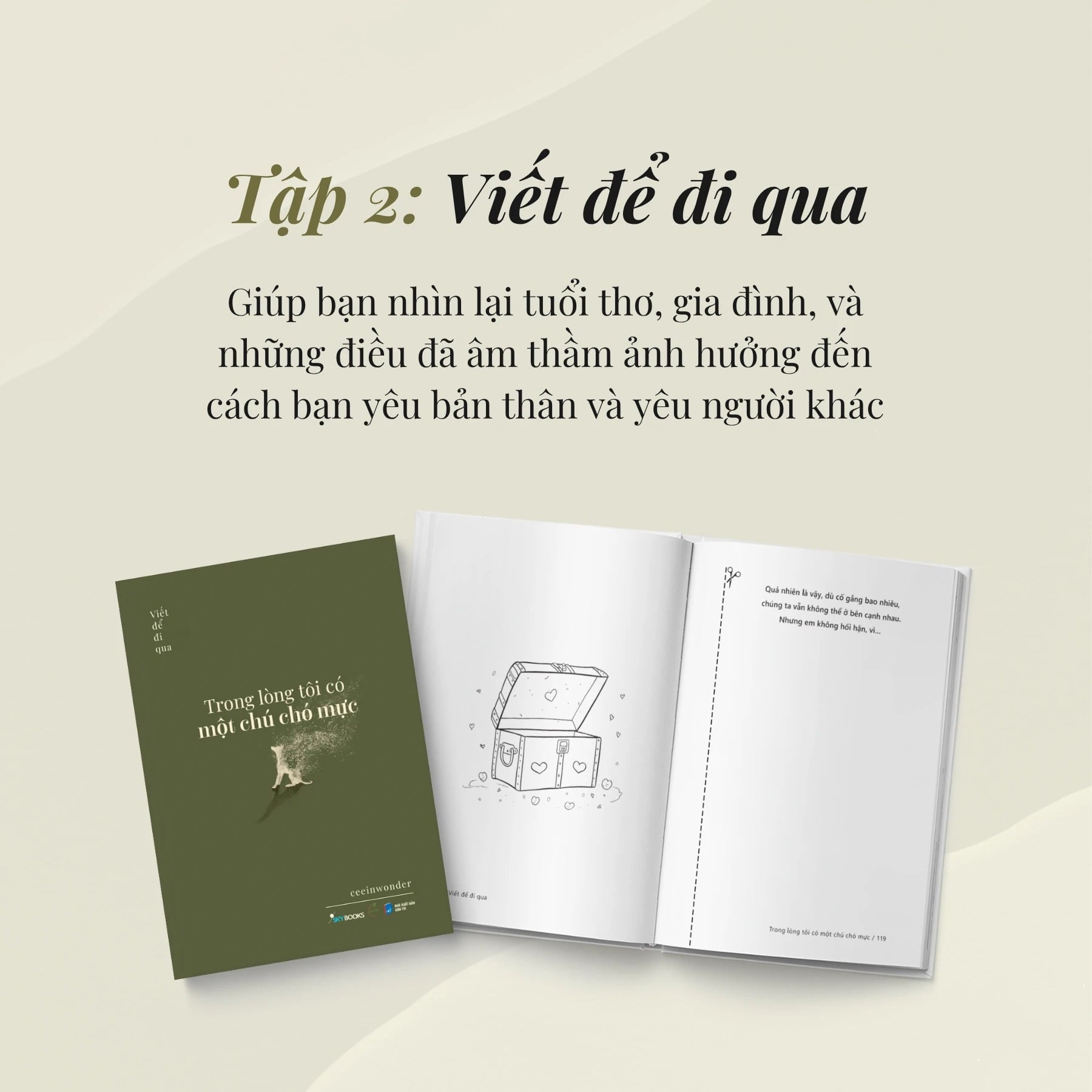 - Tập 1: Viết để thương mình: Giúp bạn trải lòng trước những nỗi lo về hiện tại và tương lai, những nuối tiếc về ước mơ còn dang dở, những hỷ - nộ - ái - ố không thể điểm mặt gọi tên.