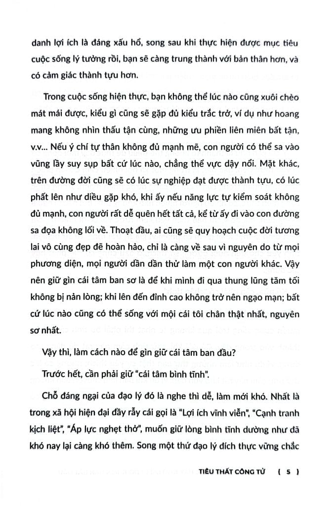 “Không có gì phải hoài nghi, cái tâm ban sơ chắc chắn là lý trí hơn một ý tưởng thai nghén trong đầu vụt lên vào một lúc hứng khởi nào đó; chắc chắn lý tưởng hơn những mục tiêu trong cuộc sống đi theo hướng lợi ích. Ta không thể nói rằng mục tiêu cuộc đời đi theo công danh lợi ích là đáng xấu hổ, song sau khi thực hiện được mục tiêu cuộc sống lý tưởng rồi, bạn sẽ càng trung thành với bản thân hơn, và có cảm giác thành tựu hơn.