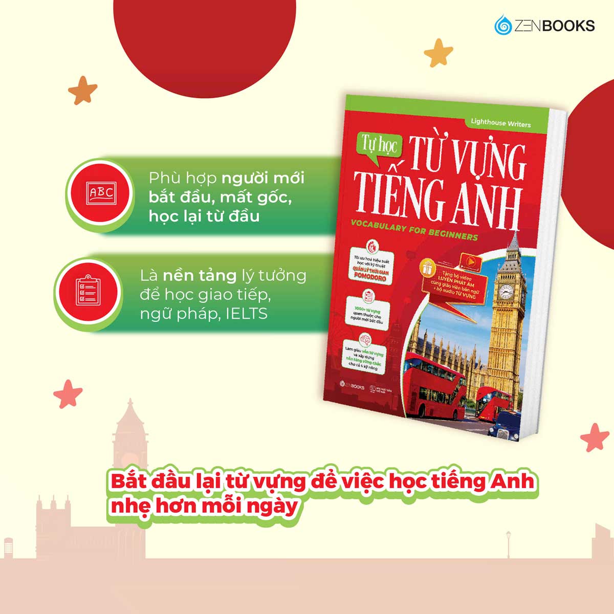 Từ vựng chính là nền móng của mọi kỹ năng tiếng Anh. Khi sở hữu vốn từ vững chắc, việc học ngữ pháp, luyện nghe - nói hay đọc hiểu đều trở nên dễ dàng và hiệu quả hơn. “Tự học Từ vựng tiếng Anh - Vocabulary for Beginners” sẽ giúp bạn đặt những viên gạch đầu tiên thật chắc chắn trên hành trình chinh phục tiếng Anh, để việc học không còn là áp lực mà trở thành trải nghiệm nhẹ nhàng, rõ ràng và đầy hứng thú.