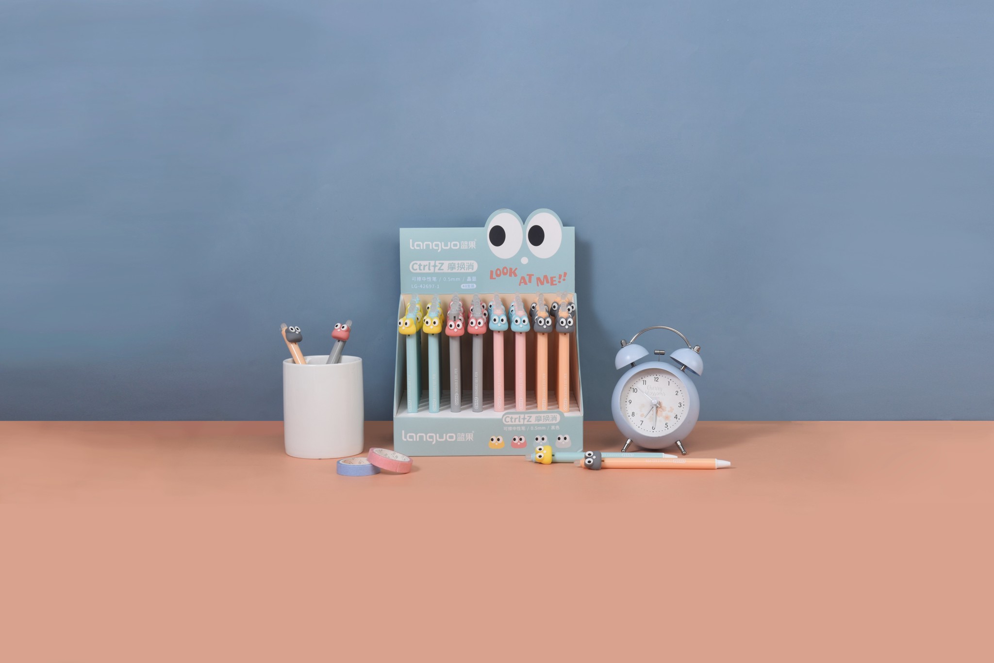- Tạo hình các mặt bằng silicon có độ mềm tương đối gắn trên nắp bút đẹp mắt, dễ thương, vô cùng độc đáo và nổi bật, màu sắc hài hòa, tươi sáng.
