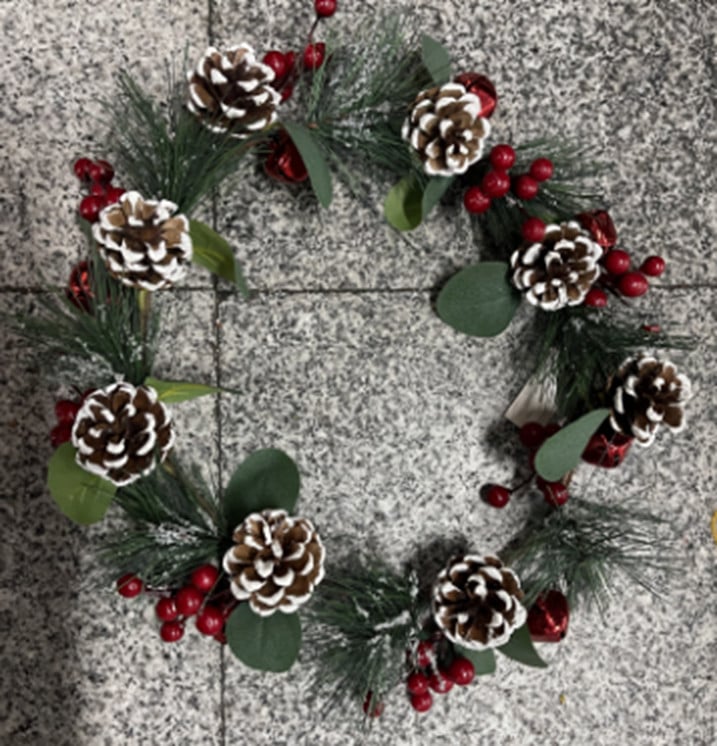 Dễ Dàng Treo: Vòng nguyệt quế đi kèm với một dây treo hoặc dây ruy băng, giúp bạn dễ dàng treo trang trí lên cây thông Noel, cửa sổ, cửa ra vào hoặc bất kỳ không gian nào trong nhà hoặc ngoài trời.