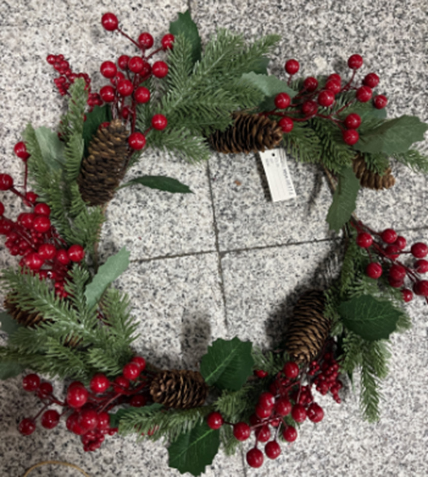 Dễ Dàng Treo: Vòng nguyệt quế đi kèm với một dây treo hoặc dây ruy băng, giúp bạn dễ dàng treo trang trí lên cây thông Noel, cửa sổ, cửa ra vào hoặc bất kỳ không gian nào trong nhà hoặc ngoài trời.