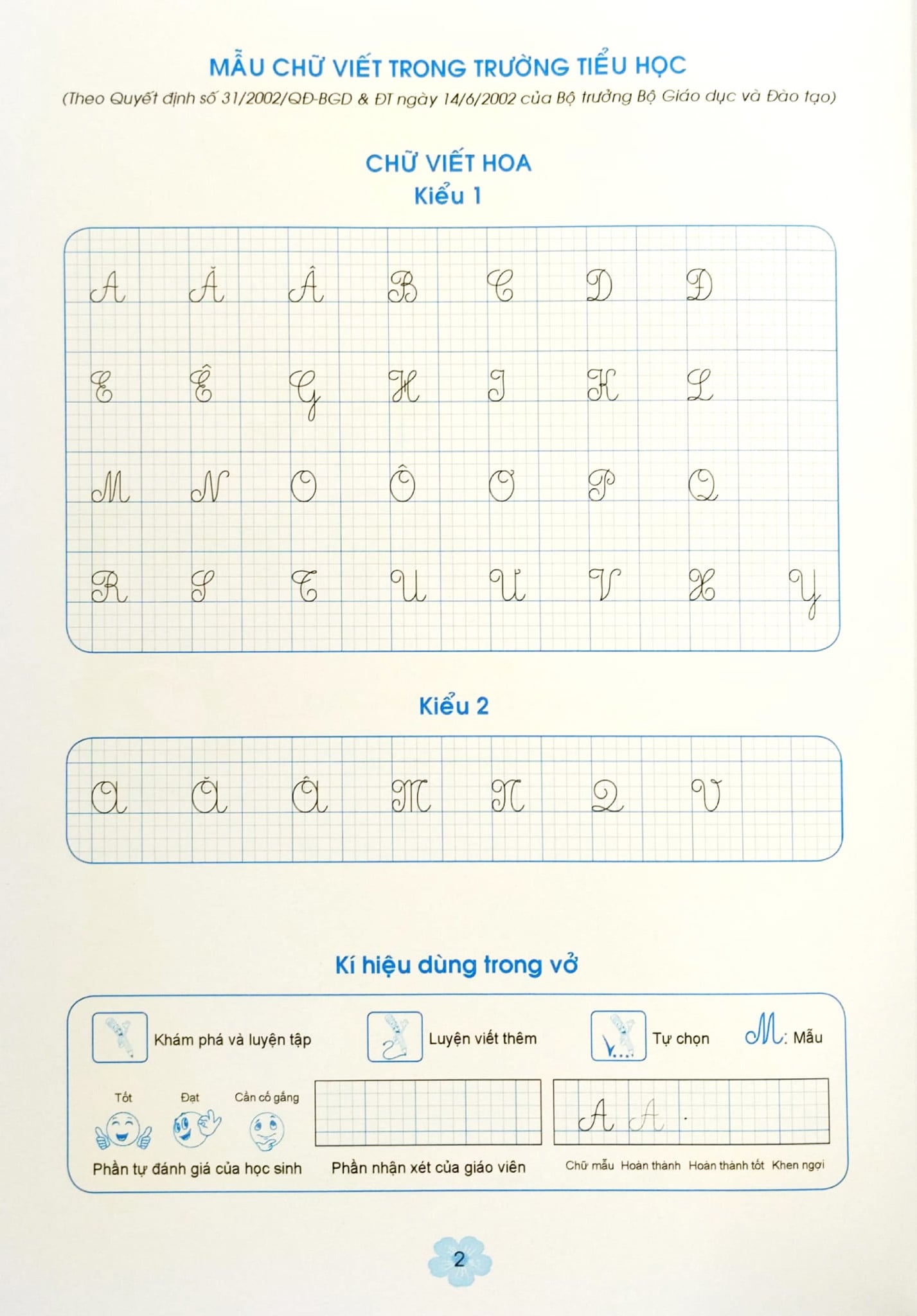Sách được trình bày trên giấy ô li với phần mẫu và hướng dẫn viết chi tiết để các em có thể dễ dàng mô phỏng và rèn luyện nét chữ của bản thân. Sách cũng bao gồm phần tự đánh giá của học sinh và phần nhận xét của giáo viên nhằm thúc đẩy động lực tiến bộ của các em.