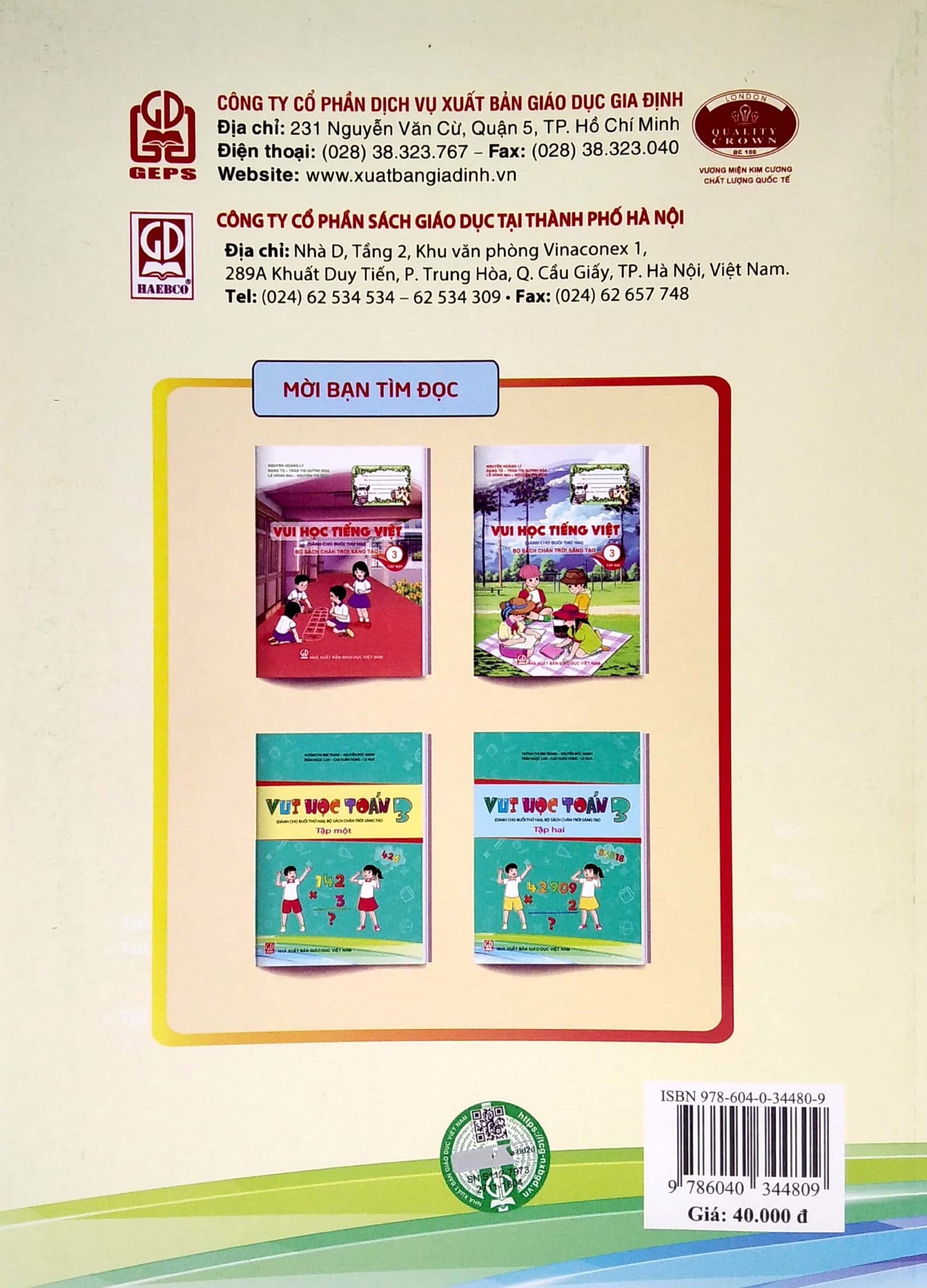 Vui học Toán 3 thuộc bộ sách Vui học (dành cho buổi thứ hai) nhằm thực hiện Chương trình giáo dục phổ thông (theo Thông tư số 32/2018/TT-BGDĐT ngày 26/12/2018).