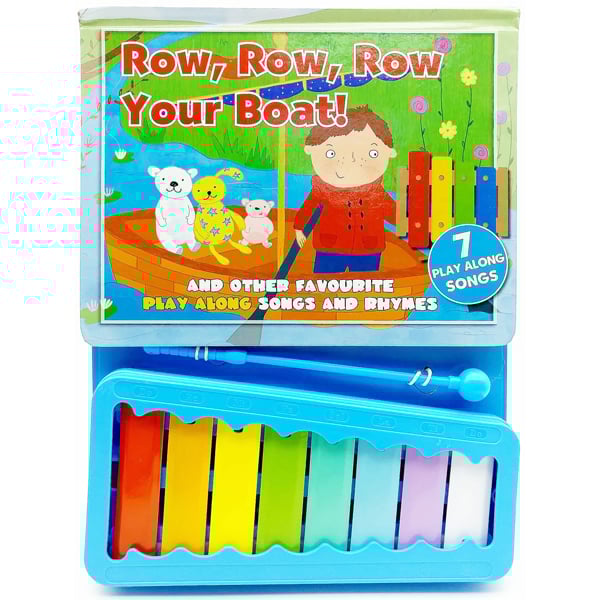 Very cool! At the bottom of his book are colorful xylophone. The book contains famous children's song lyrics and melody notes with numbers and color codes so children can learn to play the song by banging on the xylophone by matching the color code on the book and the color on the xylophone plate. 7 song lyrics and notes in the book:Mary Had a Little Lamb, This Old Man, Baa Baa Black Sheep, Row Row Row Your Boat, Old MacDonald Had A Farm, London Bridge, The Wheels on the Bus. Without battery.